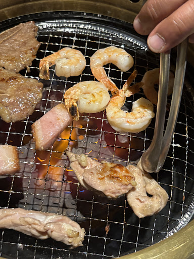 All of the food youâre given is basically completely unseasoned, something I was not at all expecting. Only one meat we ordered came with a sauce as a seasoning and it seems as though it was just drizzled on moments before so it didnât even have time to absorb any flavor. The shrimp had no sauce or seasoning as well as the short rib and chicken. The pork belly and the shrimp were the only meats we actually enjoyed. We ordered the salmon, expecting a filet, and were shocked when it arrived as bits of fish in a tin container with tin foil over the top.
