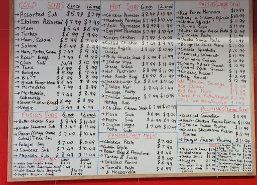 As for the restaurant itself it's a standard little Sub shop but I'm a little bit confused as to what's going on here because it's branded as an Italian restaurant run by Indians that serves pizza, paneer, pasta, subs, and fries and poutine, "and more." That's a strange mix and a big menu of some wildly different things. So the menu might be hard to manage and making difficult to focus on what you do best in develop an identity based on that. Best of luck.