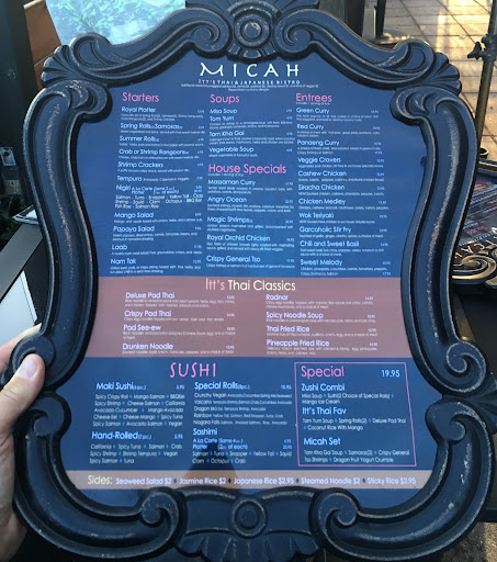 Read moreDelicious! We were visiting Niagara Falls Feb 26-March 1 from Winnipeg. We always try to find great local restaurants off the typical tourist strip. I read that Lundy Lane (the street Micah’s is on) was having a restaurant special where some were offering 3-5 course meals for set prices. Perfect! We love Thai food and haven’t had great Thai since our friends closed their family run restaurant here. For $20 per person, we had 3 courses. Appetizer, entree, and dessert. I had the soup while my husband had the crab Rangoon. Both were delicious! For our entrees I had the Angry Ocean. OH MY GOD IT WAS SO GOOD! I could not believe the healthy portion of seafood! I had it “regular spice” which was perfect! It’s served with rice to take off some of the heat. I HIGHLY recommend the Angry Ocean! Mussels, squid, fish, scallops, shrimp, yum yum yum! My husband had the pad Thai, which he also enjoyed but it was sweeter than we are used to. Dessert was the cheesecake trio (good) and a unique rice pudding with black bean and I think banana. It sounded strange but it was delicious!