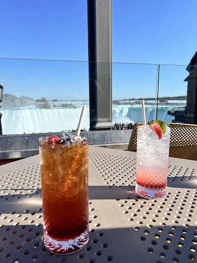 The service here is super good. Probably the best waitress I’ve ever seen. We got lucky to get a table by the window. Got a nice view of the falls. Initially we wanted to dine in the table rock house restaurant but the nice seats were all booked. Here in the outdoor patio there are plenty of good seats. For people who don’t want to spend money, they can just take pictures on the stairs. It’s similar view. But dining here in the evening and watching the falls from day light to dark is another experience.