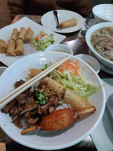 Had their Cha gio (pork fried spring rolls) and the vegetarian one too and their pho tai (rare beef noodle soup) and the Com suon nuong (pork /beef with rice) got the strawberry shake for free cuz I spent more than $25 my...