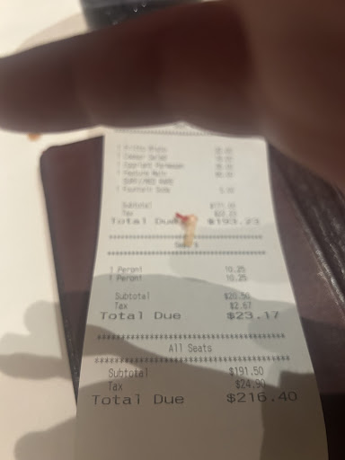 Lia’s best offer to make amends was a free dessert, which we declined as we no longer had time. This gesture was wholly insufficient, given the seriousness of the situation and our growing belief that we were being discriminated against. When the bill arrived, our appetizers were comped, but this small concession did nothing to address the issue. (We are hungry and we are going to watch our show hungry and compete for food after the show with other guests)