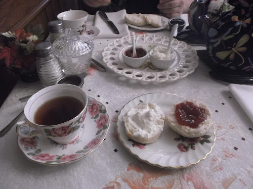 I went to the Queen Charlotte Tea Room for the first time yesterday with my family. From the moment you enter the picturesque century home, you get a very welcoming feeling. Immediately upon entering we were greeted by Roger; the owner. He brought us upstairs to a table immaculately set for four. The room was full of early century art, items, and pictures of the royal family. It had a distinctly traditional British feel that you would find only in British seaside bed and breakfasts and small tea rooms.