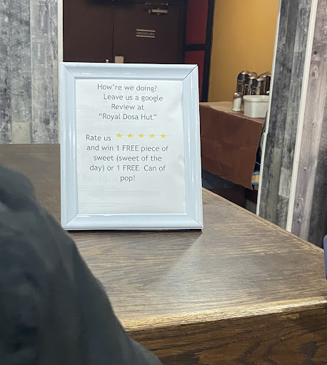 0 stars is what this restaurant deserves for their customer service. We had 4 major issues with this restaurant We were a party of 5 and ordered 5 different dosa orders The waiter who gave our food came to our table, placed the dosa and started to walk away. He didn’t say anything about what type of dosa it is. We had to ask him which dosa is this, this is something the waiter should mention when they bring the food and place it in front of the person whose order it is NOT across the table! My order was given wrong as my dosa was given to one of the other people at our table (which we noticed once we started eating). I mentioned this to the waitress who took our order she said she can give me a spicy sauce on the side. Even though the order I was told is inside and the person who got my order specifically asked for no extra spices. Another waitress came and said the kitchen said this is how the order is and after going back and forth she said you guys can switch. EVEN THOUGH BOTH PLATES HAVE BEEN EATEN OUT OF. What restaurant says to switch your plate with another member. Would she do that? No. We asked for the bill and was told to go to reception, even though we noticed the waitress who took our order brought the payment machine to a customers table. We went to reaction and asked for separate bills and the owner at reception said 1 transaction is free, we don’t do separate bills you can e-transfer amongst yourselves. He also said each other bill will be charged for transaction. Which is an inconvenience to their customers, and he said this very rudely. How is this good customer service. There is a sign (see picture attached with this review) of this restaurant technically bribing customers for a 5 star review for a free pop can or sweet of the day. I didn’t think much of this when I came, however after leaving i understand why they are doing this. To hide their 1 star poor customer reviews. The parking lot is full of snow and slush and there is no lights in the alley. I have never been to such a horrible horrible...
