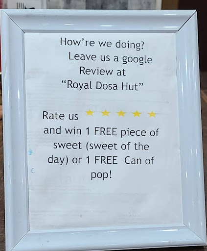 0 stars is what this restaurant deserves for their customer service. We had 4 major issues with this restaurant We were a party of 5 and ordered 5 different dosa orders The waiter who gave our food came to our table, placed the dosa and started to walk away. He didn’t say anything about what type of dosa it is. We had to ask him which dosa is this, this is something the waiter should mention when they bring the food and place it in front of the person whose order it is NOT across the table! My order was given wrong as my dosa was given to one of the other people at our table (which we noticed once we started eating). I mentioned this to the waitress who took our order she said she can give me a spicy sauce on the side. Even though the order I was told is inside and the person who got my order specifically asked for no extra spices. Another waitress came and said the kitchen said this is how the order is and after going back and forth she said you guys can switch. EVEN THOUGH BOTH PLATES HAVE BEEN EATEN OUT OF. What restaurant says to switch your plate with another member. Would she do that? No. We asked for the bill and was told to go to reception, even though we noticed the waitress who took our order brought the payment machine to a customers table. We went to reaction and asked for separate bills and the owner at reception said 1 transaction is free, we don’t do separate bills you can e-transfer amongst yourselves. He also said each other bill will be charged for transaction. Which is an inconvenience to their customers, and he said this very rudely. How is this good customer service. There is a sign (see picture attached with this review) of this restaurant technically bribing customers for a 5 star review for a free pop can or sweet of the day. I didn’t think much of this when I came, however after leaving i understand why they are doing this. To hide their 1 star poor customer reviews. The parking lot is full of snow and slush and there is no lights in the alley. I have never been to such a horrible horrible...