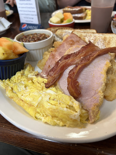 I would not recommend going here. I have been a vegetarian for over 8 years and I have never been treated like this or with so much disrespect at a restaurant. I ordered an egg English muffin sandwich with no bacon and homefries. They said no problem. I start eating my home fries and there is bacon in it. I go up to a waitress (very dark brown hair in a ponytail) and inform them. She said well yeah we are a breakfast place with only one grill, of course everything is cooked in with the bacon and meat grease. I said that when I ordered my food with no meat I wasn't informed that it would be cooked in bacon grease. She tried turning it around on me and said I should have known as this is a breakfast place and should have ordered something. They asked if I wanted my sandwich (despite the fact that I didn't want my home fries cooked in bacon why would I want to eat eggs cooked in it?) Asked if I wanted to order something else. I could only order a bowl of fruit. I said if they had informed me of this when I ordered I would have gone elsewhere but my mother and daughter had already gotten their food. The waitress treated me like a nuisance and irritation in her day. Didn't seem to remotely care and seemed more bothered by my presence. She made a big deal about not charging me for the egg sandwich and fruit (which I didn't eat) but charged us for the other 2 meals. Was giving me attitude, and getting snippy. Told me what else would you like me to say. I just wanted the restaurant to give me a sincere apology and not to treat an upset customer like a nuisance. As for the snippy comment about of course it's all cooked together one grill it's a breakfast place, IN 8 YEARS ALL OTHER RESTAURANTS INFORMED ME WHEN I ASKED FOR NO MEAT. And I have never been treated so rudely for a dietary restriction. I have gotten better apologies and more concern for simple mistakes or waits on orders at other restaurants. The waitress was at our table when I burst into tears over eating meat and had to run out of the restaurant to cry and purge the bacon out of my system and still was utterly rude. Ruined our Mother's Day breakfast and was rude to me infront of my 5 year old. Will NEVER...