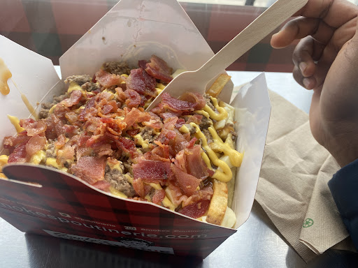 On a recent trip to Niagara Falls I was very excited to try eating at this place as I love poutine and I've never been to a place that offers custom poutines. Upon arrival the place instantly had a weird vibe as there was a young girl working and two younger guys just lingering around talking to her they stepped aside while we made our order. On the website they showed several of their poutines offered chicken when I asked which one was the most popular the young girl just said we only have two in a tone that I can only describe as I don't care. So I decided to try the chicken bacon ranch in a large size which by the way is probably way more than one person needs to eat but I was so excited to be in this place I went for the big one my wife ordered a traditional small poutine. There are very few tables in this place and the two guys that were lingering decided to just sit down and take up seats so we ended up just sitting along the window facing the street in very uncomfortable high chairs. The food itself was very underwhelming my wife's poutine her curds were still cold and not even melts it and mine although was tasty was lacking some real flavor. This place is very average at best and not very clean inside or at least it wasn't on that day since the employee seem more interested in having a conversation with the young boys hanging out at...