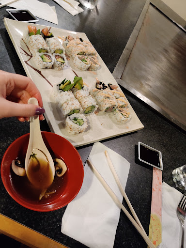 Read moreI will start off by letting you know, I am a Gluten Free, and Dairy free eater. (& Have been for 7 years since June 2014.) My husband and I really enjoyed our dinner here, two nights in a row. There's definitely room for improvement, but they were already doing well on improvement the next night. Either well they did Great! Good on checking the sauces (including the hot sauce, so the next time I didn't eat the spicy sushi maki rolls, or even the Miso soup). They had / have a gluten free teriyaki sauce, and a gluten free sauce with the Good brand that's more genuine to most Japanese restaurants. Unfortunately it wasn't caught the first night, that I don't eat dairy, soon enough...as I was not going to eat the stir fried rice with a cup or 1/2 cup of butter in it. BUT it looked beautiful, and I would have greatly enjoyed it if I could have. The bean sprouts vegetable stir fry, and the shrimp were absolutely delicious. (Cooked with garlic and oil). The chef did a Fantastic job cooking on the flat top grill, making a fun show as they do. I had come in feeling very tired from a day of more activity than I had been used to, and a struggle getting up from a nap, but that was a great wake up. I am sure the cooks get all types of people to present to, and he was/they were patient with my calmer, quieter, demeanor. I very much appreciate that. A server in his/their twenties (by my estimate) asked us the second night we came, if we were regulars, like Locals, or Tourists. We responded with that we were tourists. Out of the three types of Maki rolls I had on the second night, I Liked the Salmon-Avacado the Best, then the Avacado-Cucumber. We most preferred the rolls with the rice on the outside. Those were the ones we'd enjoy the rolls as a Whole then. My third roll I had was the White Tuna, which was also satisfactory. Whenever we go back someday, we'll look...