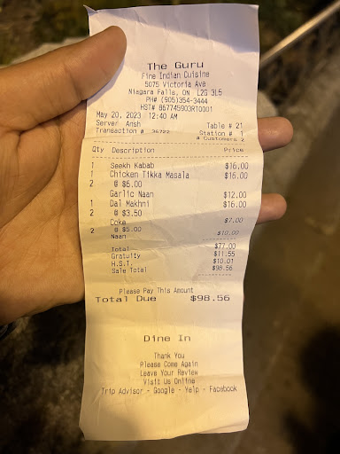 To make matters worse, despite the poor service, The Guru Fine Indian Cuisine still charged us gratuity. It felt unjustified to be charged for a service that was below par and left a lot to be desired.
