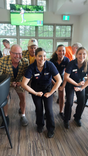 We got a lot of the menu items, the red Sauvignon, and the Triple Bogey Lager which we loved. The food was homey and pleasant. Things were nicely plated. My trout had a tasty and unusual quinoa rice side with tonnes of pine nuts. Out table was right by the window and the view was lovely. Staff very friendly and attended to us carefully, even as we translated the entire menu to my grandparents.