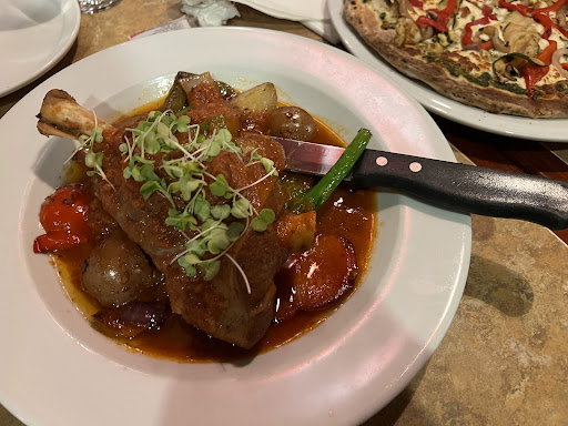 Went with my family today. We had chicken pesto pasta, mediterranean pizza, and a bbq beef burger. The pasta was extremely greasy (soaked in oil more than pesto), very little chicken which was undercooked, and had so much onion. The person eating the meal stopped eating shortly after starting because it was unpalatable. The burger was apparantely good, but not exactly like you can mess up a burger and fries. Were the fries store bought? The Mediterranean pizza didn't have much flavour except for the roasted peppers, and was soaked in oil with bits of pesto. The pizza also tasted store bought, that being said, I've had better store bought pizzas. Why are waters brought automatically without asking the diners what they want to drink first and why do all the drinks have ice? I was surprised that the decor and lighting looked like a sports bar and grill, and had a curious atmosphere. The menu was also interesting in that the number of drinks were equivalent to the number of dishes. The vegetarian options in the restaurant were at most a handful (~5 at best), and the online there were more vegetarian options. The employees also didn't seem to want to be there, but I can't blame then. Advice: fire the chef, avoid using a microwave, stop buying store bought and frozen foods, and make unique dishes rather than copying dishes from somewhere else. Do NOT recommend. Avoid this location...