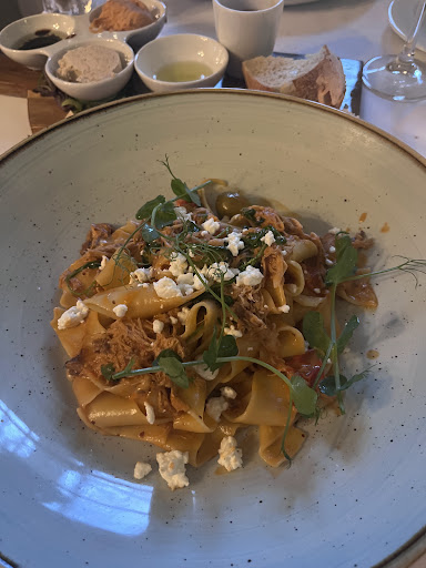 For mains, I had the rabbit pappardelle. I went in with high hopes, but it didn’t quite hit the mark. The rabbit was served pulled rather than in chunks, and while that’s a stylistic choice, I personally prefer the texture of larger pieces of meat—it’s just more satisfying. The shredded texture didn’t deliver the same experience.