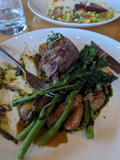 Presenting a fair portion of the main protein but less side ingredients tends to run throughout Ravine’s menu. The salad niçoise ($27) had plenty of flaked hot smoked steelhead trout around the plate but little salad greens to compliment the salty black olives and fish. Smartly, Ravine leaves the creamy boiled potato and crunchy green beans unseasoned, so I did end up spearing pieces of those with the fish and olives.