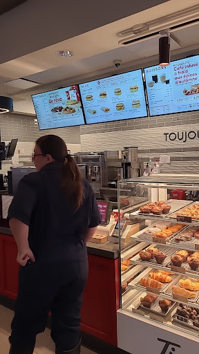 Read moreEn attendant pour ce faire servire 2 clients amis des employer sont passer et se sont fait offrire des breuvage et cela sans devoir payer un capuccino glacé et l'autre un café glacé noir ... très ordinaire et puis les salle de bain les poubelle bedorde et le rouleau de papier n'étais pas installer et avait des matière fécale dessus 🤮 puis alors que nous attendions notre commande pendant plus de 10-15minutes des grand foncé le serveur a voulu mettre du café original à l'intérieur alors qu'il m'a vue que je le regardais il a arrêter et a attendu que le foncé soit couler plusieurs employer non même pas de filet à barbe et d'autre çe promène sans même avoir de filet à cheveux très ordinaire et je croit le pire service à la clientèle que j'ai vue dans...