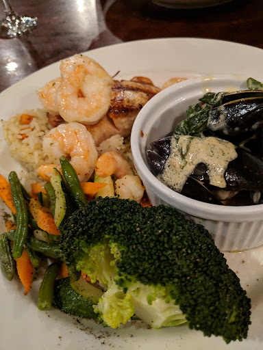 After what I had heard of the place the the reviews I was going in with really high hopes of good seafood. The setting was quite nice on the main floor but the washrooms are not what you would expect. Strange that I would bring that up but it goes along with the rest of of the experience. The food could have been amazing but the salmon was frozen or had been cooked for a long time and was warmed up. The bacon sauce on the muscles was amazing though but the muscles seemed overcooked maybe or reheated too often? The shrimp was average and the buttered vegetables seemed to be the highlight of the meal. If I didn't know any better based on the audience present in the restaurant I would imagine that this place used to be really good but the only people who may have tasted the foods Glory days are the elderly folk who keep coming back.