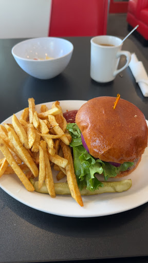 Read moreGreat atmosphere, extremely good service. Waitress was great, kind and attentive, always knowing when I was low on coffee. Kitchen staff were great. The wait time was less than 10 minutes to get my food. I ordered a classic burger with the works, and fries, portion size was perfect, and I was full before I could finish my plate. Did not have room for desert, even though I wish I did. Burger was nearly perfect, although I found it a tad dry (I should have added cheese.) fries were perfect. And for the atmosphere of the place, I’d say it is a great 50’s style diner, with an amazing aesthetic ie. classic coca-Cola signage all over the walls, nostalgic pictures of cars from the 50’s. Seating was very nice as well, with the old fashioned...