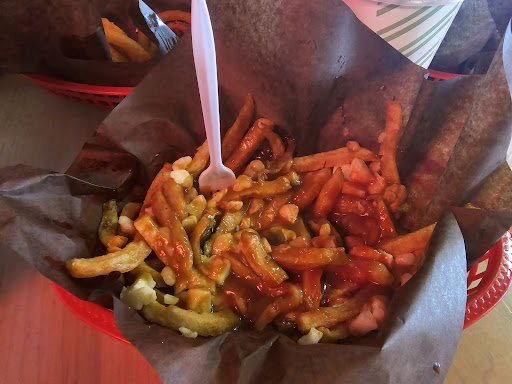 Read moreThe restaurant is modern with a 60’s vibe. Red led lighting runs the length of the large window front. Simply decorated and pleasant atmosphere for a busy restaurant. The chairs are hard wood and very uncomfortable. bit noisy and the sounds echo, but that’s to be expected for a small establishment. I ordered my all time favourite - Montreal Smoked Meat on light rye, fries and coleslaw. By the time I finally got my meal, after waiting over 45 minutes and watching people come in, order, get their order and leave, I was sorely disappointed. This meat was definitely not Montreal Smoked meat. It dripped with grease, literally. There was a puddle of grease on my plate! And so salty! And it was barely warm. But I ate it anyway because you pay first and then get your meal, even when dining in. And I was hungry. $18 for that - absolutely not worth the price. The fries had a taste of freezer to them. I couldn’t eat them. The one saving grace was the coleslaw - delicious, but such a small serving when you only have the choice between the slaw and soup. Because the cashier didn’t ask me if I wanted a drink when she took my order, I had to pull out my wallet again and hand over more money, making this meal priced over $20. Not worth it. Why isn’t the drink included? Will not...