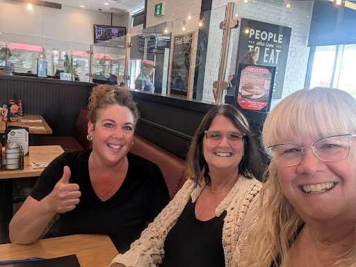 Cobb Salad $18 đ„: The presentation of the cobb salad was beautiful, neat, and clean with generous amounts of each topping and the salad was a very decent portion for the price. Filling, Fresh, Crispy and they gave you a choice of dressing instead of being stuck with one. Southwest Steak Wrap with fries $18 đŻ đ: The steak wrap exceeded my expectations. It was juicy, fresh, flavorful, and warm and every bite was perfect. You could taste the chipotle sauce but it didnât overpower the rest of the ingredients. I was not expecting the steak to be as juicy as it was, figured it would be on the dryer side but it wasnât! It's truly a masterpiece. The fries were crispy with a nice crunch in each bite but fluffy and soft inside. They werenât overly salted which I love as it gives you control over your sodium level of preference. They were also the perfect portion of the wrap. Warm and fresh. The presentation could have been better of the wrap as it was just sliced in half and put flat on the plate but still doesnât take away much. Dessert: Pecan Pie with Ice Cream $8 đš đ„§: We got their homemade pecan pie with ice cream to share and it was sweetly divine. The crust was crunchy yet soft and each fork of the pie just slid on gracefully. Generous amount of pecans on top and the filling was soft, moist, flavourful, and each bite was just as enjoyable as the first. Definitely on the sweeter side but somehow not overly sweet. Iâve never been a big fan of pecan pies because they have always been too sweet for my liking and the filling never seemed perfect but this was the first time I enjoyed it and craved more! When we asked for Ice Cream with the pie I was only expecting one scoop but they served the pie with a generous 3 scoops of vanilla. Waitress: She was quick, friendly (not overly friendly), listened to orders well, brought out the food fast (within 10-15 minutes of placing order), did a quick check in, anticipated questions and answered them before they could be asked (as if reading your mind). The service was perfect. Right on time with the offer of dessert and bringing the bill. Location/ Atmosphere: Clean, patio had nice-sized tables and seats were sturdy. Offered a view of the main road. Shade was provided with umbrellas. I really love the details to the washroom signs. For the female washroom, it was a stick figure with a triangle skirt but the arms were made with a W and for the man's same typical stick figure but with arms with an M. It Shows subtle creativity. We went back a 2nd time but for breakfast and we sat inside. The booths are comfortable with space. I liked the pancake combo but didn't enjoy the eggs much. I asked for scrambled but got a omlette and it wasn't flavorful. The pancake was perfect however and served with local...