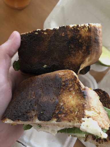 Hopeful, we order the Montreal smoked meat sandwich on toasted "rye" bread, a lemon-lemonade, and a peach iced tea. Other items include a bag of Twiggs roasted coffee, two bags of Miss Vickie's sea salt and malt vinegar chips, and chocolate covered coffee beans. The associates working were nice, not forthcoming but assumptive in nature—indicative of new or post-covid public reopening (in our opinion, as we have experienced)—we can empathize. However, when our order arrived, a sad grocery store "rye" sandwich style bread (think Wonder bread loaf) barely toasted, with what seemed to be grocery store pre-packaged uniformed sliced Montreal smoked meat with the saddest deli-pickle (half a deli pickle to be exact). The peach iced tea was good, the lemon-lemonade was lacking in actual lemon flavour and was warm at the bottom of the cup and cold on top where the ice lingered, a giant a half lemon hindered comfortable drinking from the straw—a slice or wedge would have sufficed. The chips were stale, period.