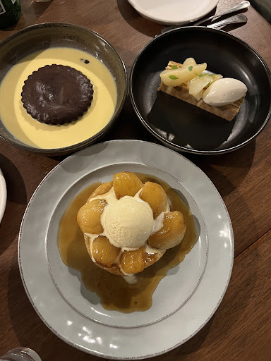 We had the beef pie, the chicken, and the steak. We had started with bread and cultured butter and the truffle and cheese croquettes. Then we got every dessert. I don't know how to use words to describe the depth and truth of the flavours, but I can say each item's intended flavour is astronomical. The highlights, if I can even pick, were the cardamom sauce with the deeply cocoa chocolate cake, the beef pie juice and crust, the light as ambrosia pear honey cake, the delicate sugar brûlée'd (?) croissant apple tart... the truffle croquette filled with warm melted cheese... oh and the cocktails were special too. I had the Silk Road Quench cherry tea and gin, and it was an astonishing colour and flavour. Also, the fresh loaf of bread was truly dreamy. An eggy softness and lightness. I couldn't fault a single thing here. Thank you for existing! We'll see you tomorrow for coffee and next year when...