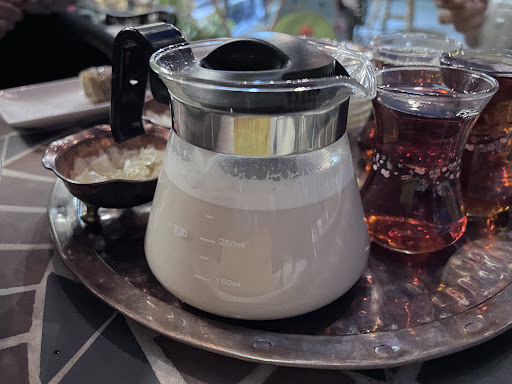 We ordered a variety of sweets and drinks, hoping for a delightful culinary experience. However, I was disappointed with the quality of the sweets, particularly the Baklava, which seemed undercooked. On the bright side, I thoroughly enjoyed the Saffron tea named Kereshmeh, which stood out as a flavorful and aromatic delight.