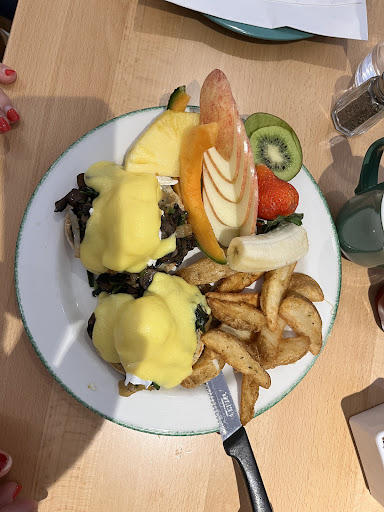 As for the taste, I was blown away by the explosion of flavors in every bite. The Eggs Benedict I ordered were cooked to perfection, with a velvety hollandaise sauce that complemented the delicate poached eggs beautifully. The fruit salad on the side was a refreshing and tangy accompaniment, adding a burst of freshness to the dish.