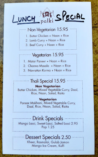 I've been to Palki's during their dinner time and enjoyed it a lot, great atmosphere with great decorations and fairly well kempt. It was a pleasant, quiet evening, very relaxed and the food was awesome; everything was well prepared, well seasoned, good portions (pretty steep price, but on level with every other Indian restaurant on the NS). And I've also done takeout several times, for a quick dinner and some parties. No complaints, ever.