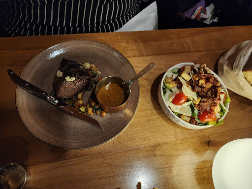 The burger was incredible dry and burnt and the lamb pretty bland and dry but actually tender. The baked potatoes were good and the fries were burnt/overcooked. Since it was my boyfriends and I 5 year anniversary, we wanted to go somewhere unique and not somewhere we would normally go to - but instead got awful quality food (excluding the tartare that was good) and near to no service. A server asked how our bread and tartare was, then zilch after. Since we prepaid for a breakfast the next morning, we went and it was actually really good! Not burnt or dry and the servers were also really sweet too.