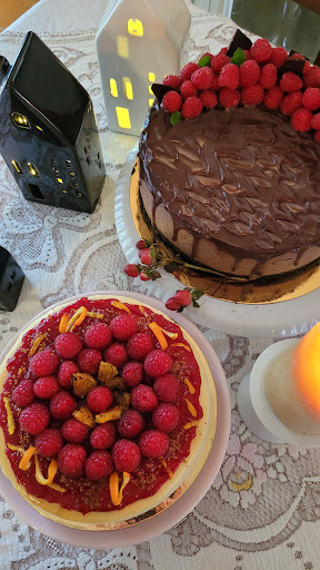 Kelly and Kyle, new owners of Cheesecake 101, are knocking it right out of the park. I saw their announcement that they had taken over the business, just before my 50th birthday - perfect timing to order custom cake! I had two very specific ideas, and they not only met, but completely exceeded my expectations. On the day of my party, they showed up at my door with an 8" dark chocolate cheesecake with fresh raspberries ("more bitter more better!" was what I asked for and it WAS, thanks to Kyle), and a 6" Grand Marnier cheesecake with a gingersnap crust (the ginger crust was a great idea, Kelly) and, of course, fresh raspberries. These cakes were incredible. The texture was gorgeous, the fruit was pristine, and the flavours were impeccable. I served them with prosecco, espresso and brandy - perfection!