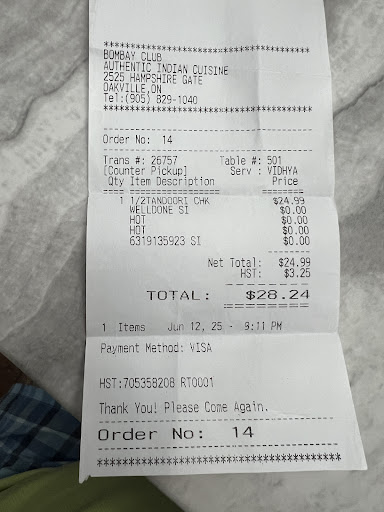 UPDATE Dec 2023: 6 Stars as usual, the map location has been updated long ago after it was reported to Google, all good now. Excellent excellent service and food quality are top-notch. Super friendly staff and cozy atmosphere. Will go back again and again. Butter chicken, Rogan Josh, Bombay Club Platter, Lamb Biryani, Chicken Biryani, Garlic Naan, Jira Rice, Kadhai Chicken, Goat Curry are a few to list. Try their Masala Tea or Filter Coffee to end your dining experience. UPDATE June 2023: 6 Stars if I can give that, Bombay Club Oakville is 5 stars all the way in every aspect. Its location on Google Maps shows wrong. It is, in fact, located at the exact unit where Bombay Bhel used to be. BOMBAY CLUB is 10 times better than any Indian cuisine restaurant I've visited so far. The food was fantastic, authentic, beautifully presented, and most importantly, freshly cooked and fast. Service was friendly, and servers were like they're reading your mind. If there, and you like nonveg food, then try their Bombay Club Platter without fail. Each dish was different and had its own flavour. No doubt, it's one of the best qualities that their Chef knows what they're preparing, none of the dishes tasted the same, which I noticed in most other restaurants because they sometimes taste almost same using similar gravy; at this place however, each dish had their own mouth watering flavours. The ambiance was cozy, seating was perfect, and this place is well connected, ample parking around. Thank you, Bombay Club, for making my Father's Day lunch with my family memorable. We will sure visit again and again. Keep up the good work and wish you all...