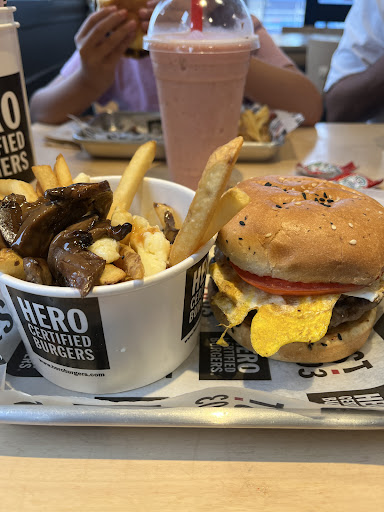 Read moreI love Hero burgers, but this location in Bronte is weirdly laid out and very dirty! You order through one of two touch screen displays which were filthy and had no option to customize the toppings on your burger, they have a sink in the dining area, the floors were dirty, the tables and seats were sticky and covered with leftover food/crumbs, you get your own pop from the machine…. Filled a cup with Sprite and found black bits of some substance floating in the drink (maybe the lines were not clean) dumped it out in the sink! Washrooms disgusting….. dare not touch anything