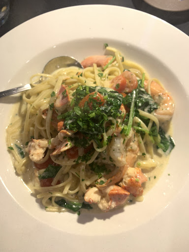 The food was pretty good, above adequate! My girlfriend and I felt that the calamari had been re-frozen and was very tough. The seafood pasta which was advertised of being with shrimp and lobster came with 3 shrimp and precisely 2 portions of lobster; one the size of my thumbnail and the other approximately 4mm x 7cm.