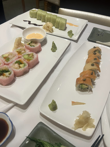 All of the food arrived but not my green dragon roll. After significant time of watching my son work his way through his entree, I had to call over the waitress and ask for my roll and as it hadnt even been started, it arrived very late to the meal. From this point the service declined. Even after piling our empty dishes to one side of the table I still needed to flag our server to request the bill and once received (I had my credit card ready) she disappeared again. Another 10 to 15 minutes and I just want to go. I position my cc so it's poking out of the top of billfold-no one noticed so I held it in my hand waving it slightly to attract attention so we could pay and go. Bill was $91, tipped 20%.