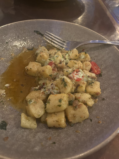 Our entrees were the gnocchi which I was told was homemade and it was underwhelming as once again the amount of oil used was extreme and rendered it a sloppy mess. The flavour profile was okay but not outstanding, very little tomatoes as well which were needed to balance out the acidity in the dish. ( picture shows the excess oil) My daughter had the lamb pasta dish minus the feta and capers. Once again it was underwhelming, it barely had any lamb and it was just warm when served. It looked like it came out of a can. The flourless chocolate cake with salted caramel was the best part of the meal. Our server was nice until she saw we had a WagJag and her attitude completely changed towards us, she became curt and almost agressive with her tone. In hindsight, tipping her 18% on the totality of the bill prior to the applied wag jag seems like it was undeserved after that attitude.