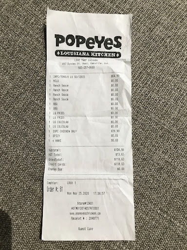 Read moreWill not be returning ever again! After many bad experiences with wait times at other Popeyes, found out you could pre order online and just pick up. Found this location and thought we would give it a try. Ordered using the online ordering system, prepaid, system said “order will be ready in 20 minutes (5:09 PM)”. Walked in at 5:08 PM, was told my order would be ready in 10 minutes. After the extra 10 minute wait I asked again at the counter about my order and was told “we are working on it, your order is conning up next.” During my wait, 3 customers that had been walk ins had, ordered and been served their orders, while I was waiting. After 24 minutes of waiting in the restaurant I was finally given my order. 45 minutes from the time I placed the order! We get home with our food to find out that they had messed up the order and given us the wrong food! Never again will Popeyes be getting my money! Quick Chik will be my goto from now on; much better food, good service and they are a...