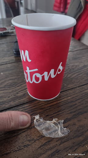 Ā Ā Ā Read moreMaking this Review for my friend. Unfortunately he has one of those phones called. iPhone. No disrespect to my friend. But I hate the stupid thing. Cant figure out how to leave a Google review on it. So, I am doing it on my android. These are my friends words. This morning I bought 3 coffees 2 cookies and a donut. My 93 year old Grandmother, asked to drink the coffee with the lid off. Half way through through the coffee ,she encountered a piece of plastic in her mouth and almost choked , coughing it out of her mouth. I went back to the store, with intentions to make the manager aware of the incident. So it wouldn't happen again. A female employee came beside the manager and started talking, stating that this plastic that, I will show you in my video, couldn't be coming from their store. She offered a refund for the coffee. I didn't accept the refund as that was NOT why , I came back .I came in hope that they would acknowledge the mistake and try to prevent it from happening again. Unfortunately The manager and the lady worker, did NOT offer an apology. I left as though there was no reassurance, this incident wouldn't happen to me or someone...