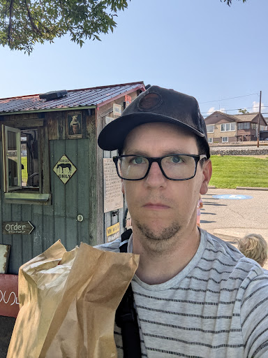 Read moreOk.. yah gotta stop here! This guy knows how to smoke meat! He does party platters as well! You gotta get here early though. He has a following.. lol . It’s that GOOD! Think 5 different sandwiches, drinks to wet ur whistle! You will leave feeling relaxed full…. There’s a dog park to let ur dog play while u eat. There is a full washroom (showers)! Yep. Nicely kept. Skate park here too. Lots of trees for sitting under while u eat as well. River near if u wanna cool off in the summer. I’m telling you. It’s a great spot to stop and chill. Beat to be there...