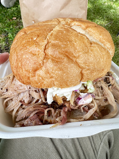Fantastic pulled pork sandwiches! I’ve had all three sauces and recommend the great white although they’re all great depending on your personal preference. Get there early because he always runs out in a matter of hours… and that’s super lame. The owner is a hard one to read a lot of the time but he seems to have locals that really like him. The park can have all kinds of characters hanging out there but they’re harmless. The food is priced well and matches the quality… he could even charge a little more in my opinion. Definitely a must stop if you’re rolling through...