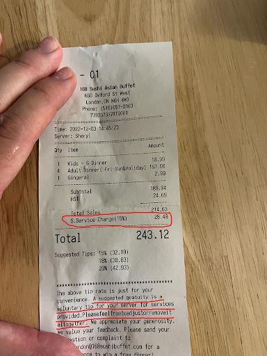 168 Sushi restaurant use to be 5 Stars almost 10 years ago back in 2015, and now it went downhill over the years likely with new management and the new owner of the business. When I have gone here with a couple of my relatives. We were charge 15% surcharge of mandatory tipping, and shockingly there is a time limit of 1 hour and 30 minutes. So, this is more like âThere is a limit to eatâ than calling this âAll you can eatâ. My brother ordered a few items, and he is still missing the salmon hand rolls and other salmon sushi rolls. The service is slow and items were missing. I had their grilled mackerel, but it is too much bones and they do not put the sauce on it for you. Another downside is their ice creams is not on their tablets. You have to walk several metres towards the bar section to scoop your own ice creams, and it can be hassle waiting a couple minutes for the people who are scooping a bowl of ice creams. For almost 10 years, how can a good sushi buffet went down so poorly? Why is there a time limit; when patrons are charge 15% mandatory tipping and the service is slow? It was not like that before just petty cheap owner who wants to cut corners to save cost and overcharge customers. They just want you to stay there for 90 minutes, and asked you to pay and leave their restaurant. It is not we are trying to take advantage of eating everything you have from your inventory or hurting your business. For the last couple years, I have a lot better experience with other buffet restaurants than 168 Sushi restaurant on Oxford Street beside Crabby Joeâs restaurant and near the former Porsche dealership. After the poor experience, I will never come back to 168 Sushi restaurant. The manager there sounds like he is yelling when he talks to his customers or people over the phone. I will patronize Sushi Galore restaurant on the Hyde Park area across from Rona hardware store close to the Starbuck, and Dairy Queen. Another best sushi All-You-Can-Eat restaurant is iHeart Sushi buffet restaurant just across the road beside T&T Supermarket. I would recommend those two sushi buffet restaurants as a better alternatives over 168 Sushi restaurant. Those two sushi buffet restaurants have much better service, no time limits and better quality food. I had never had a bad experience of those two buffet restaurants. 168 Sushi restaurant is more of greed over customer satisfied service. More like 168 Reasons why not eat at this restaurant. The only decent food is their seafood boiled, sashimi and beef. I am going to Sushi Galore restaurant next time, and I do not mind driving a few kilometres toward the Hyde Park area. I would not recommend 168 Sushi restaurant to anyone. Slow service, greedy by charging mandatory tipping and a time limit to eat there. There are many better sushi restaurants that offers All-You-Can-Eat service in London, Ontario. Do not spend a dollar here. I will avoid coming here in the future and this will be my last time here. My experience is poor here and never again I...