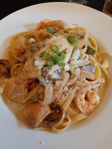 Read moreThis is a late review as it's been 4 months since I visited the Bistro. My memory was that the service was good and the restaurant was different. Like being in a house or something.? We were in a room with several tables. Cozy! Until it got busy... then cozy turned into loud. Our room wasn't the only room being serviced. We received our cocktails right away and they brought me an amazing virgin cocktail. Our dinners were very good. Although... I had the vegan stirfry which at the time was made with chicken peas. It was delicious! However, it was a MASSIVE pile when it arrived at the table. It was almost overwhelming. Until we realized it was mostly rice. Still, a very good dish! I would order again! The Seafood Thermidor was good, however, it was accompanied by plain vegetables and rice. Not buttered or grilled.. just plain. It sort of seemed out of place. All in all, I did have a nice dinner out, despite the noise. I would return when in Brockville and...