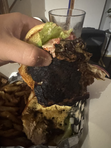 The place was great, the service was good while ordering. I really badly wanted to love it but a few things lef me unsatisfied; because of some issues with the organization and planning and overwhelming response to the place today, we ended up waiting for just about 1 hour for our order, and the entire time waiting, we had no interactions with staff or updates on our food, instead we listened to a really ackward fight in the back with yelling and poor treatment of workers by other workers. The place was still obviously unfinished but that's to be expected. Then, we get to the food, I love the sauce and the flavour and textures of the toppings. But boys, turn the heat down on this burger, this thing looks like it was in the middle of the LA wildfires and counted as a casualty, the fries had good flavour but were really greasy and completely limp, I'm hoping that the two orders we made were flukes because the meal was virtually inedible. I'm probably going to give you guys a second chance when you're more established, but you really need to get your act together, and I'll change my review but for now this is the picture on the forefront of your reviews, if we hadn't paid we would have done...