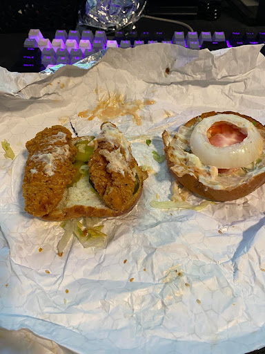 The pieces of chicken were too small for the bun for one burger as seen in the photo. It was like Moses parting the red sea, there was so much empty space. The other burger was only slightly better in terms of presentation, but at least the chicken was adequately sized.
