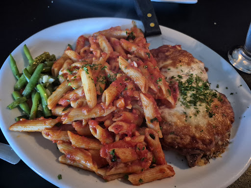 For the main course, I ordered the chicken parmesan with penne pasta in marinara sauce and a side of green beans. The chicken parmesan was excellent—tender, juicy chicken with a crisp breading and melted cheese on top, served in a hearty portion. The marinara sauce was fresh and well-balanced, but the penne pasta was a bit overcooked for my taste—not quite al dente. Still, it paired nicely with the chicken. The green beans were a delightful surprise—sautéed with fresh garlic, red bell peppers, and flaky salt, and full of flavor.