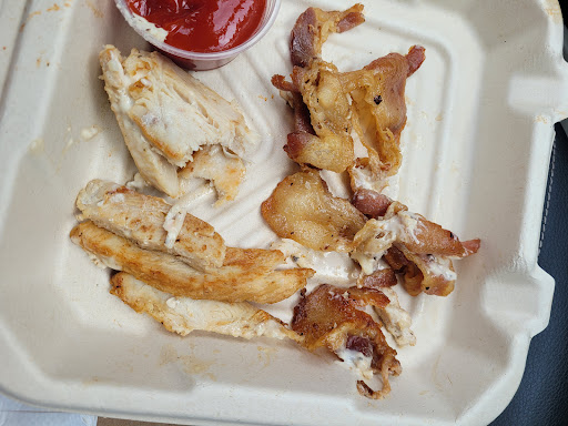 Β Β Β Read moreFood has gone downhill. Got the chicken ceaser naan sandwich. The chicken was hard/old/overcooked/jerky... The bacon was all fat and undercooked. I had to take all of it out and ate just the naan with lettuce, tomato, onion. Fries were overcooked. Was given a huge platter with fries and 2 pogos for a 4 yr old. Was supposed to be a kids meal. $46 for 1 meal and 2 kids meals. Never going back, sorry. Can't stand wasting money on garbage food. Especially for the price. The guy working was pleasant, and that was about it. And f.y.i. the chicken in the picture is not seasoned. It is hard and...