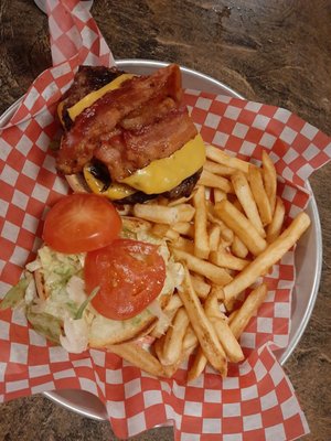 A man who I believe is the "manager" or "owner" came around and asked how things were, I said honestly ? and I showed him the remaining part of my burger which was raw and very under cooked. He told me that he would let his staff know. He took it to the cook, I heard the cook spout out about it and the man then returned and said at least it was "prime rib burger" and then turned to my wife and said you still plucking away and she said no not after seeing his burger. When you order a burger at any establishment you expect it to be cooked properly. Unless stated otherwise in the menu as I have seen at other burger restaurants. Regardless if this is a real "Prime rib burger" or not every burger should be cooked the exact same to the exact same internal temperature. My wife's burger was properly cooked and had no pink at all let alone raw burger meat.