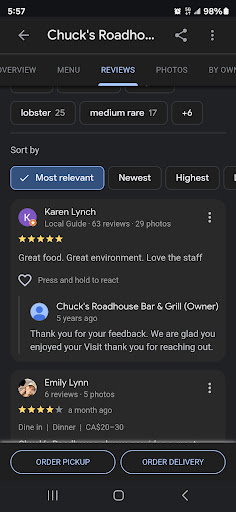 Read moreMy girlfriend and I have become frequent patrons of Chuck's Roadhouse, and after trying different locations, we found that the Clarke Road branch in particular stands out as the best. Our visits have always been met with delicious food and an affordable menu.