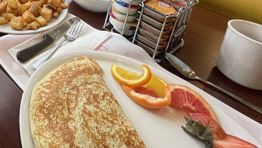 The crepe may have been better if they used better apples such as thinly sliced Macintosh with maybe a little cinnamon. The cheese would have been better if it wasn’t so bland. An older cheddar, sliced, not shredded might have been good.