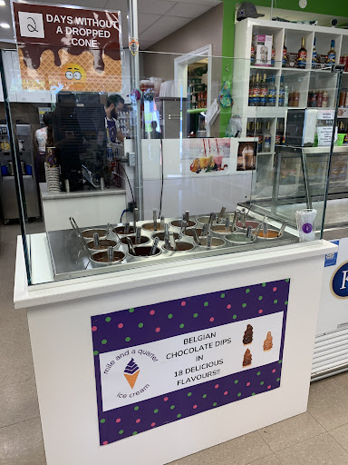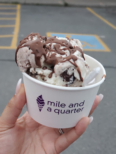 Read moreHorrible experience. I had never been here before and most likely will not return. First off, there are not 55 flavours of soft serve. There is vanilla and chocolate. There are flavour shots added o the soft serve to make the âflavoursâ this is super misleading. If you donât get just choc, vanilla or twist cone, they apparently canât be dipped in the dips. What? Really? I ordered a twist ice cream in a bowl and asked for orange chocolate on top. The girl serving made an entire mess of it the orange chocolate was dripping everywhere, she didnât clean it up and put a tiny napkin on it and handed it to me, then I was covered in orange chocolate- I asked for a napkin and she said- thereâs napkins over there. SERIOUSLY!? ooookay. So I was covered in chocolate and had to ask to wash my hands. Which she allowed me. Second my mom ordered a mixed âflavourâ cone and when she got it it tasted like straight up chemicals - not mango, peach stuff she was supposed to get. It was so gross she had to ask to give it back- and the staff begrudgingly asked if she wanted it replaced- my mom just got a twist cone. My sister ordered a chocolate ice cream and a bowl and it was the only onw that didnât have an issue. We literally made a special trip from Gan because my sis and mom were visiting and we were SO disappointed. The flavours are confusing, the âno sizeâ on mixed flavours is confusing and the staff were not great. The male staff member was nicer than the female. But I know I wonât be back or recommend mile and quarter to anyone. The whole experience was a weird confusing chocolate covered annoyance. Oh- then I was asked if a wanted a membership card for coffee pods- which I didnât buy any- and when I said no I donât buy coffee pods and Iâm from Gananoque- i probably wonât be here much- I was told-âoh well it would make you come back here more if you had...