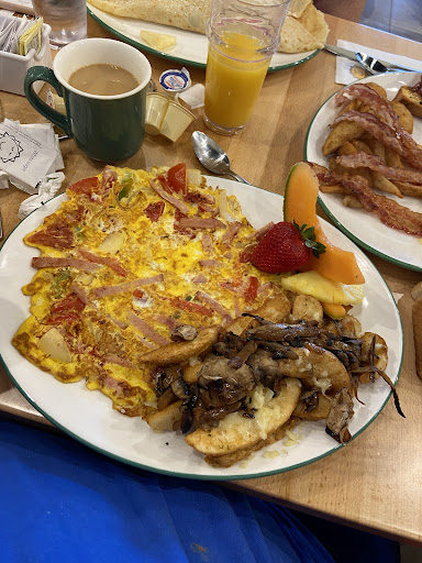 The menu offers a wide variety of breakfast and brunch options, and everything looked delicious. I opted for their famous fruit-filled crepes, and they did not disappoint! The freshness and quality of the ingredients were evident, and the portion sizes were generous. My partner had the Eggs Benedict, and it was cooked to perfection – the hollandaise sauce was rich and creamy, just as it should be.