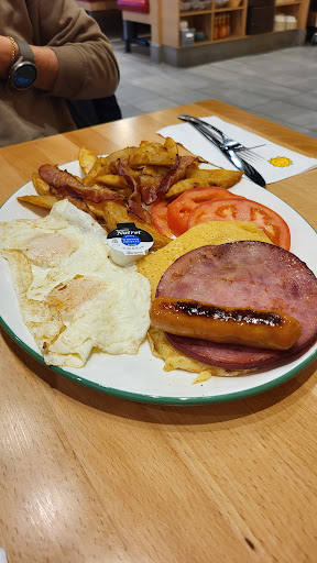 I took a coffee with a western omelette with potatoes and a side of fruit. The coffee was awesome, nice light tasting and wasn't strong. the fruit was fresh tasting and definitely could tell they had just cut it up just as my order was made.
